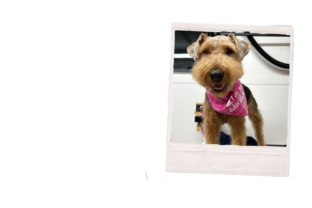 Your dog receives calm, one-on-one attention in a fully equipped, climate-controlled mobile grooming trailer parked right at your home.